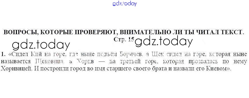 На страницах сайта gdz.today вы найдете учебный и вспомогательный материал, направленный на улучшения знаний школьной программы. ГДЗ - онлайн мир знаний Вопросы, которые проверяют, внимательно ли ты читал текст (стр. 15) Кий, Щек и Хорив 1 Учебнику по Литературе для 5 класса Москвин Вентана-граф Алгоритм успеха 2020