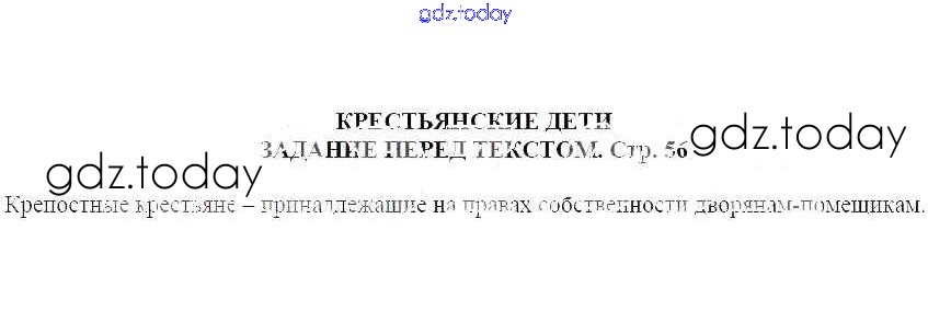На страницах сайта gdz.today вы найдете учебный и вспомогательный материал, направленный на улучшения знаний школьной программы. ГДЗ - онлайн мир знаний Крестьянские дети Решение к части 2 Задание перед текстом (стр. 56) Учебнику по Литературе для 5 класса Москвин Вентана-граф Алгоритм успеха 2020