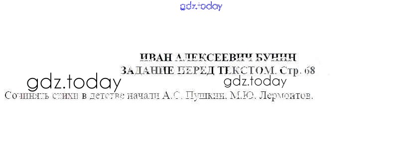 На страницах сайта gdz.today вы найдете учебный и вспомогательный материал, направленный на улучшения знаний школьной программы. ГДЗ - онлайн мир знаний Иван Алексеевич Бунин Решение к части 2 Задание перед текстом (стр. 68) Учебнику по Литературе для 5 класса Москвин Вентана-граф Алгоритм успеха 2020