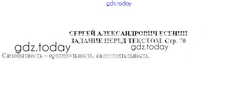 На страницах сайта gdz.today вы найдете учебный и вспомогательный материал, направленный на улучшения знаний школьной программы. ГДЗ - онлайн мир знаний Сергей Александрович Есенин Решение к части 2 Задание перед текстом (стр. 70) Учебнику по Литературе для 5 класса Москвин Вентана-граф Алгоритм успеха 2020