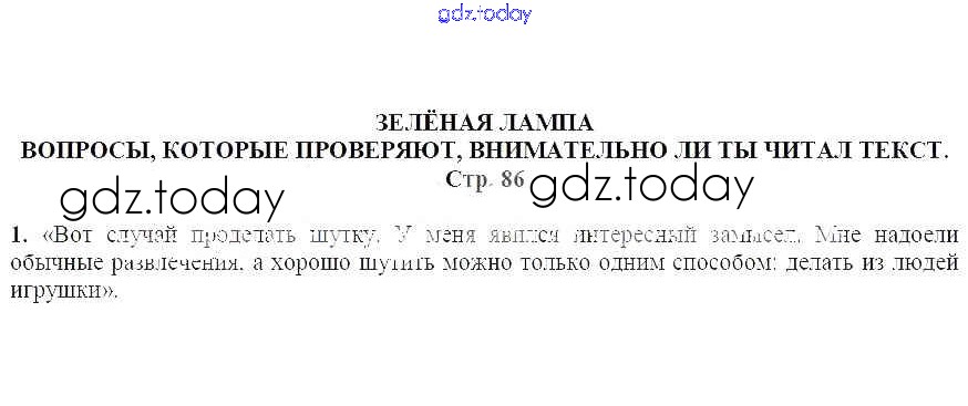На страницах сайта gdz.today вы найдете учебный и вспомогательный материал, направленный на улучшения знаний школьной программы. ГДЗ - онлайн мир знаний Вопросы, которые проверяют, внимательно ли ты читал текст (стр. 86) Зеленая лампа 1 Учебнику по Литературе для 5 класса Москвин Вентана-граф Алгоритм успеха 2020