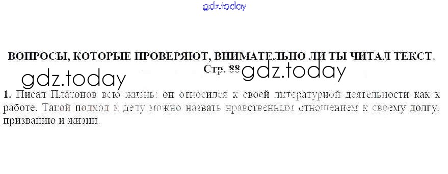 На страницах сайта gdz.today вы найдете учебный и вспомогательный материал, направленный на улучшения знаний школьной программы. ГДЗ - онлайн мир знаний Вопросы, которые проверяют, внимательно ли ты читал текст (стр. 88) Андрей Платонов 1 Учебнику по Литературе для 5 класса Москвин Вентана-граф Алгоритм успеха 2020