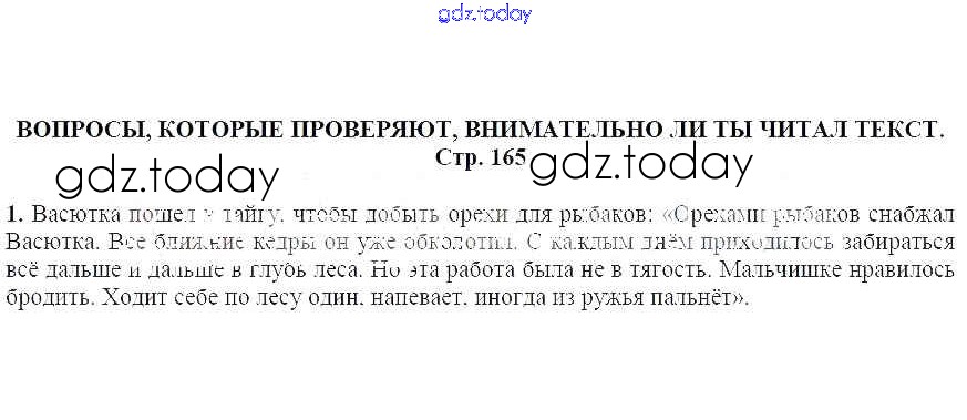 На страницах сайта gdz.today вы найдете учебный и вспомогательный материал, направленный на улучшения знаний школьной программы. ГДЗ - онлайн мир знаний Вопросы, которые проверяют, внимательно ли ты читал текст (стр. 165) Васюткино озеро 1 Учебнику по Литературе для 5 класса Москвин Вентана-граф Алгоритм успеха 2020