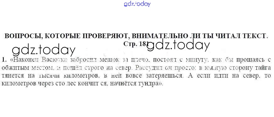 На страницах сайта gdz.today вы найдете учебный и вспомогательный материал, направленный на улучшения знаний школьной программы. ГДЗ - онлайн мир знаний Вопросы, которые проверяют, внимательно ли ты читал текст (стр. 181) Васюткино озеро 1 Учебнику по Литературе для 5 класса Москвин Вентана-граф Алгоритм успеха 2020