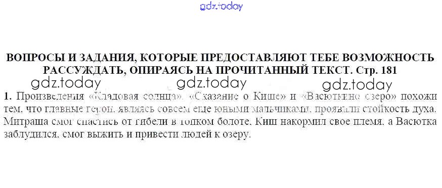 Ответы к Вопросы и задания, которые дают тебе возможность рассуждать, опираясь на прочитанный текст (стр. 181) Васюткино озеро 1 Учебнику по Литературе для 5 класса Москвин Вентана-граф Алгоритм успеха 2020
