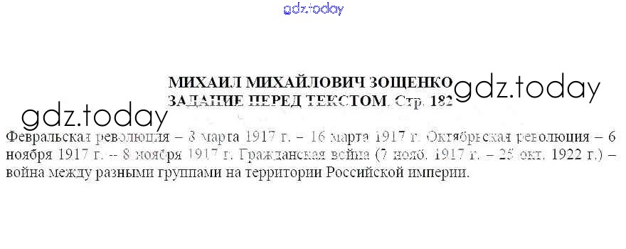 На страницах сайта gdz.today вы найдете учебный и вспомогательный материал, направленный на улучшения знаний школьной программы. ГДЗ - онлайн мир знаний Михаил Михайлович Зощенко Решение к части 2 Задание перед текстом (стр. 182) Учебнику по Литературе для 5 класса Москвин Вентана-граф Алгоритм успеха 2020