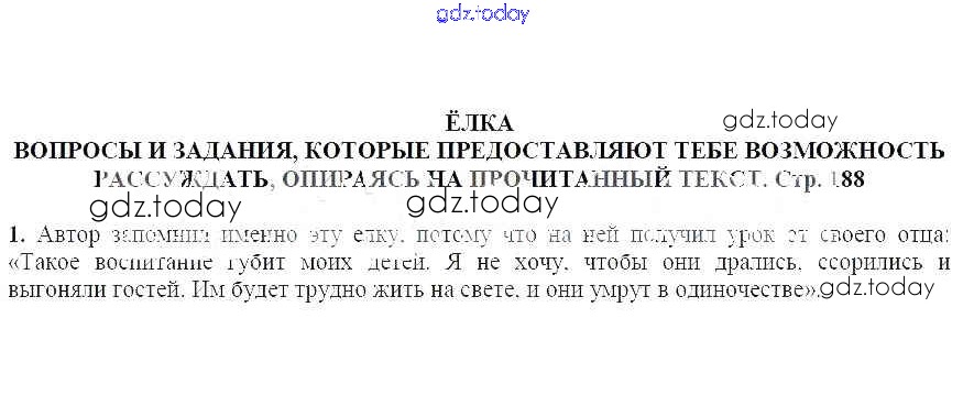 На страницах сайта gdz.today вы найдете учебный и вспомогательный материал, направленный на улучшения знаний школьной программы. ГДЗ - онлайн мир знаний Вопросы и задания, которые дают тебе возможность рассуждать, опираясь на прочитанный текст (стр. 188) Елка 1 Учебнику по Литературе для 5 класса Москвин Вентана-граф Алгоритм успеха 2020