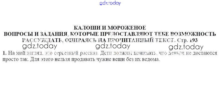 На страницах сайта gdz.today вы найдете учебный и вспомогательный материал, направленный на улучшения знаний школьной программы. ГДЗ - онлайн мир знаний Вопросы и задания, которые дают тебе возможность рассуждать, опираясь на прочитанный текст (стр. 193) Калоши и мороженное 1 Учебнику по Литературе для 5 класса Москвин Вентана-граф Алгоритм успеха 2020