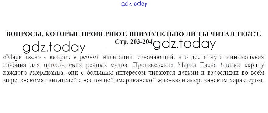 На страницах сайта gdz.today вы найдете учебный и вспомогательный материал, направленный на улучшения знаний школьной программы. ГДЗ - онлайн мир знаний Марк Твен Решение к части 2 Вопросы, которые проверяют, внимательно ли ты читал текст (стр. 203-204) Учебнику по Литературе для 5 класса Москвин Вентана-граф Алгоритм успеха 2020