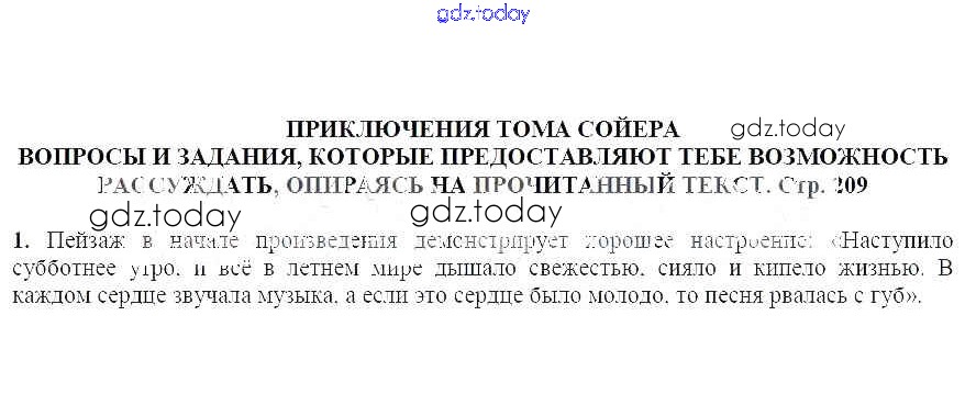 На страницах сайта gdz.today вы найдете учебный и вспомогательный материал, направленный на улучшения знаний школьной программы. ГДЗ - онлайн мир знаний Вопросы и задания, которые дают тебе возможность рассуждать, опираясь на прочитанный текст (стр. 209) Приключения Тома Сойера 1 Учебнику по Литературе для 5 класса Москвин Вентана-граф Алгоритм успеха 2020