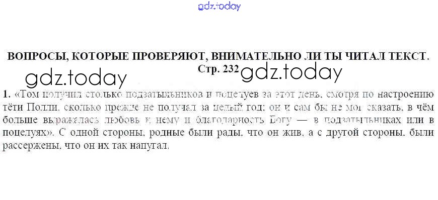 На страницах сайта gdz.today вы найдете учебный и вспомогательный материал, направленный на улучшения знаний школьной программы. ГДЗ - онлайн мир знаний Вопросы, которые проверяют, внимательно ли ты читал текст (стр. 232) Приключения Тома Сойера 1 Учебнику по Литературе для 5 класса Москвин Вентана-граф Алгоритм успеха 2020