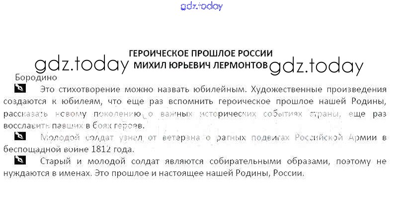 На страницах сайта gdz.today вы найдете учебный и вспомогательный материал, направленный на улучшения знаний школьной программы. ГДЗ - онлайн мир знаний Решение к части 1. Темы Михаил Юрьевич Лермонтов. Бородино Рабочей тетради по Литературе для 5 класса Курдюмова Дрофа Вертикаль 2017