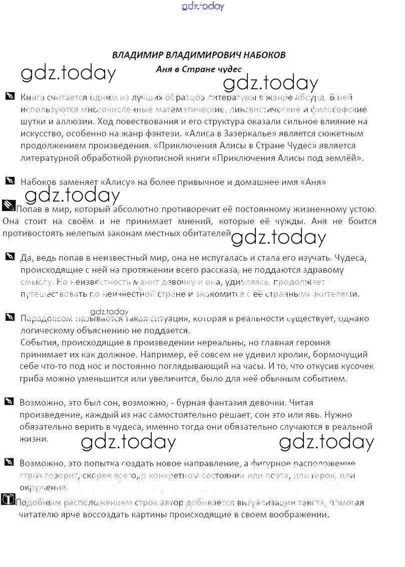На страницах сайта gdz.today вы найдете учебный и вспомогательный материал, направленный на улучшения знаний школьной программы. ГДЗ - онлайн мир знаний Решение к части 2. Темы Владимир Владимирович Набоков. Аня в Стране чудес Рабочей тетради по Литературе для 5 класса Курдюмова Дрофа Вертикаль 2017
