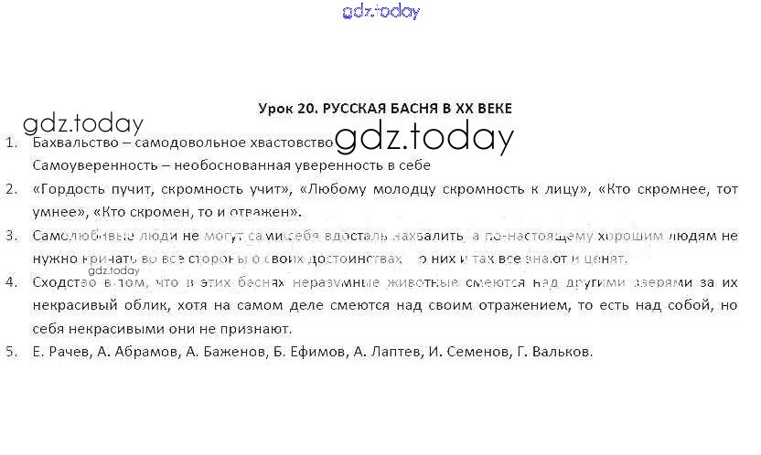 На страницах сайта gdz.today вы найдете учебный и вспомогательный материал, направленный на улучшения знаний школьной программы. ГДЗ - онлайн мир знаний Решение к урокам 20 Рабочей тетради по Литературе для 5 класса Соловьева Русское слово Инновационная школа 2016