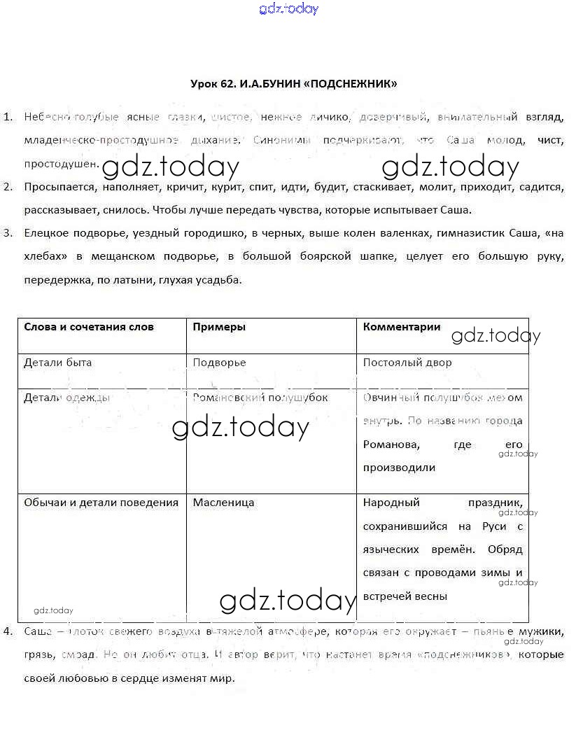 Ответы к Решение к урокам 62 Рабочей тетради по Литературе для 5 класса Соловьева Русское слово Инновационная школа 2016