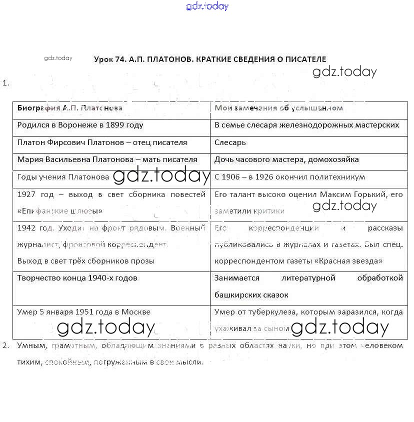 На страницах сайта gdz.today вы найдете учебный и вспомогательный материал, направленный на улучшения знаний школьной программы. ГДЗ - онлайн мир знаний Решение к урокам 74 Рабочей тетради по Литературе для 5 класса Соловьева Русское слово Инновационная школа 2016
