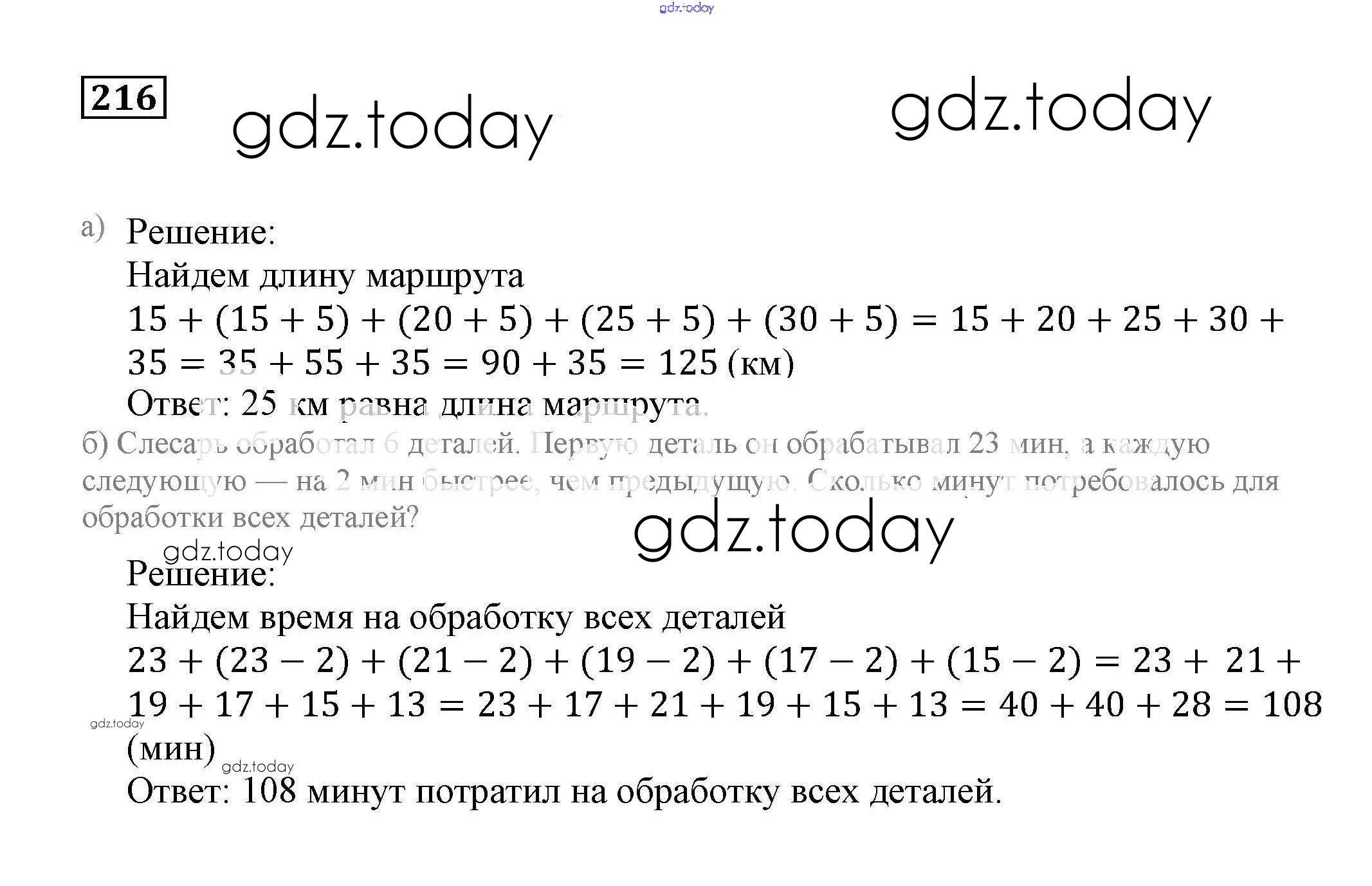 На страницах сайта gdz.today вы найдете учебный и вспомогательный материал, направленный на улучшения знаний школьной программы. ГДЗ - онлайн мир знаний Решение. Упражнения 216 Учебнику по Математике для 5 класса Бунимович, Дорофеев Просвещение Сферы 2014