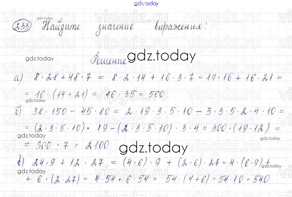 На страницах сайта gdz.today вы найдете учебный и вспомогательный материал, направленный на улучшения знаний школьной программы. ГДЗ - онлайн мир знаний Решение. Упражнения 233 Учебнику по Математике для 5 класса Бунимович, Дорофеев Просвещение Сферы 2014