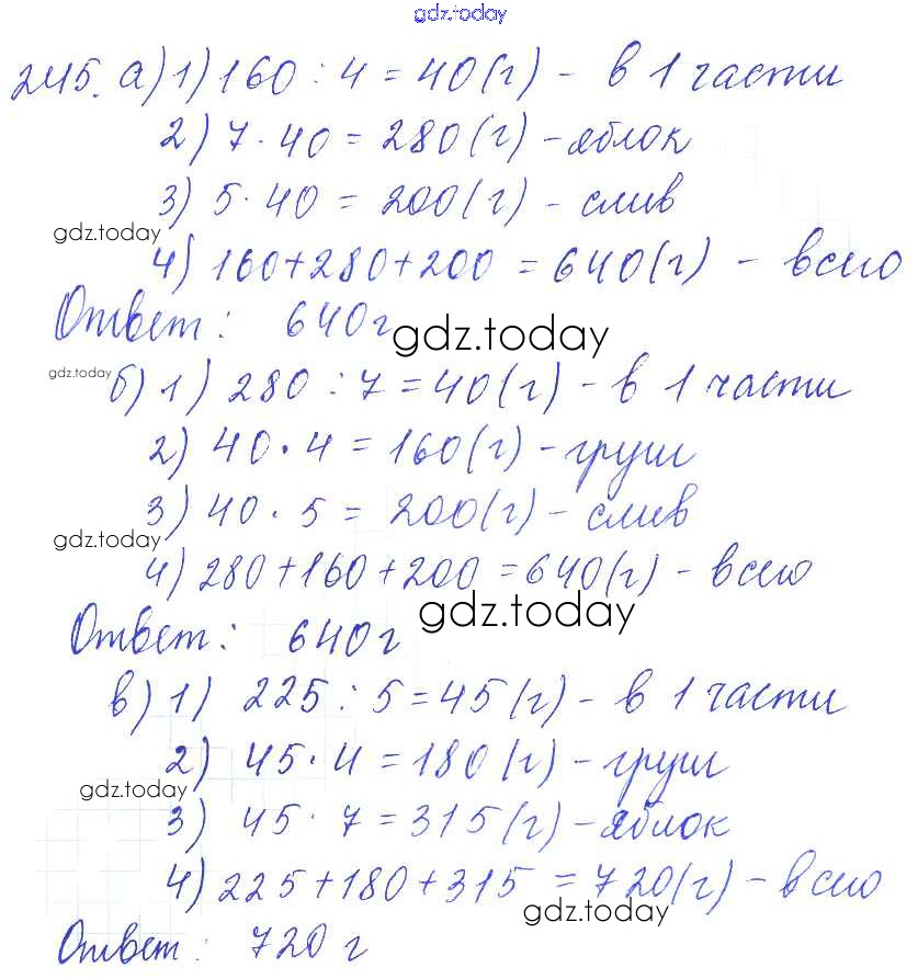 На страницах сайта gdz.today вы найдете учебный и вспомогательный материал, направленный на улучшения знаний школьной программы. ГДЗ - онлайн мир знаний Решение. Упражнения 245 Учебнику по Математике для 5 класса Бунимович, Дорофеев Просвещение Сферы 2014