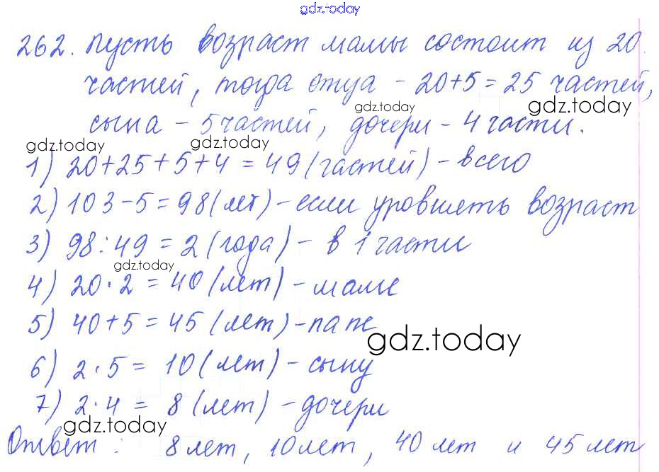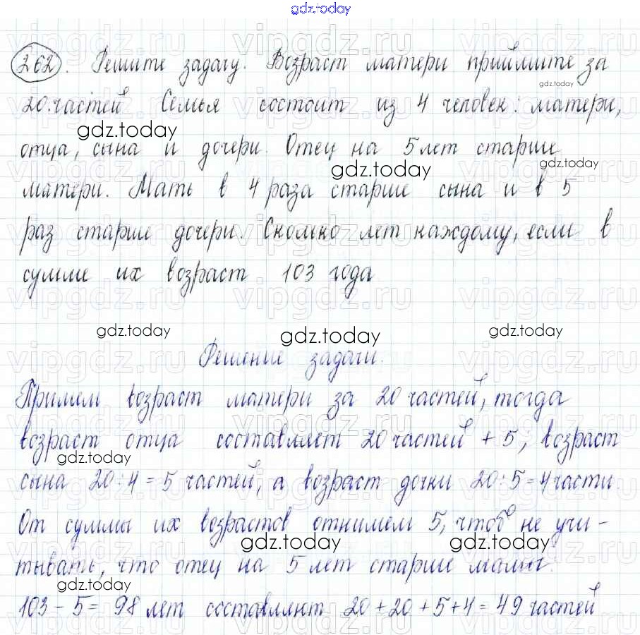 На страницах сайта gdz.today вы найдете учебный и вспомогательный материал, направленный на улучшения знаний школьной программы. ГДЗ - онлайн мир знаний Решение. Упражнения 262 Учебнику по Математике для 5 класса Бунимович, Дорофеев Просвещение Сферы 2014