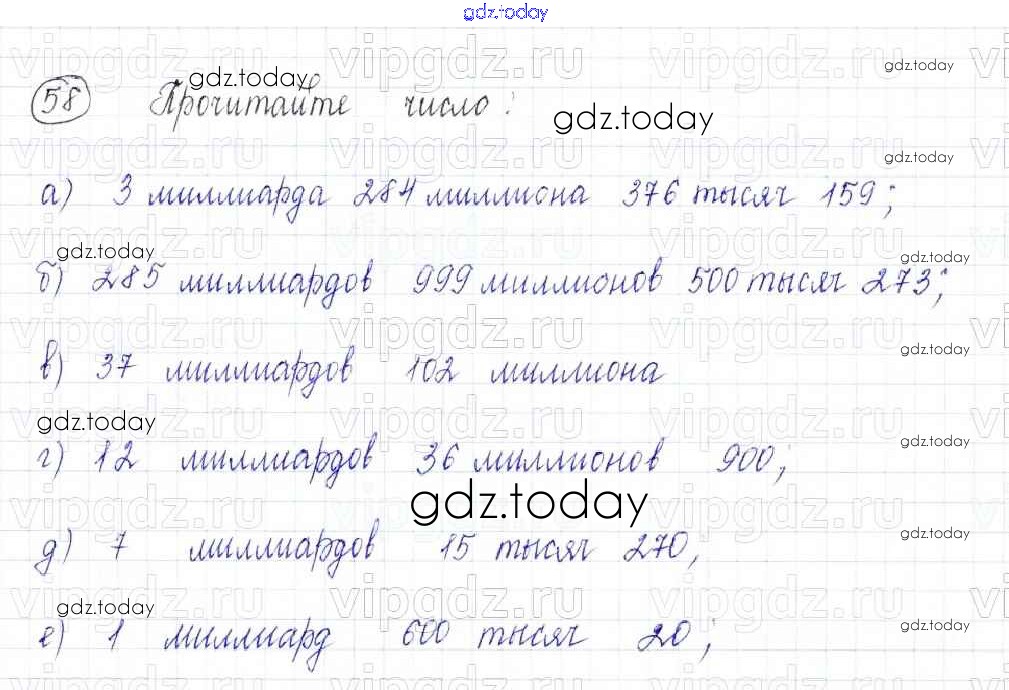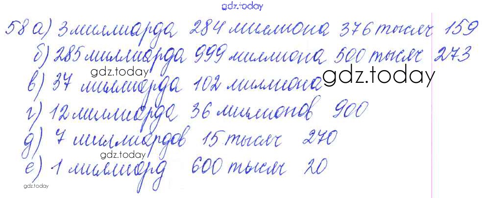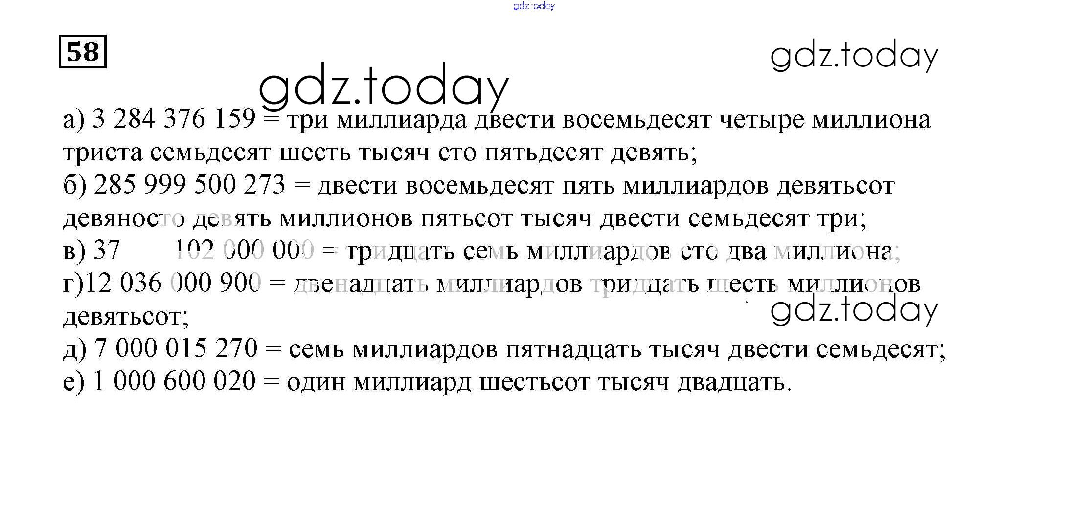 На страницах сайта gdz.today вы найдете учебный и вспомогательный материал, направленный на улучшения знаний школьной программы. ГДЗ - онлайн мир знаний Решение. Упражнения 58 Учебнику по Математике для 5 класса Бунимович, Дорофеев Просвещение Сферы 2014