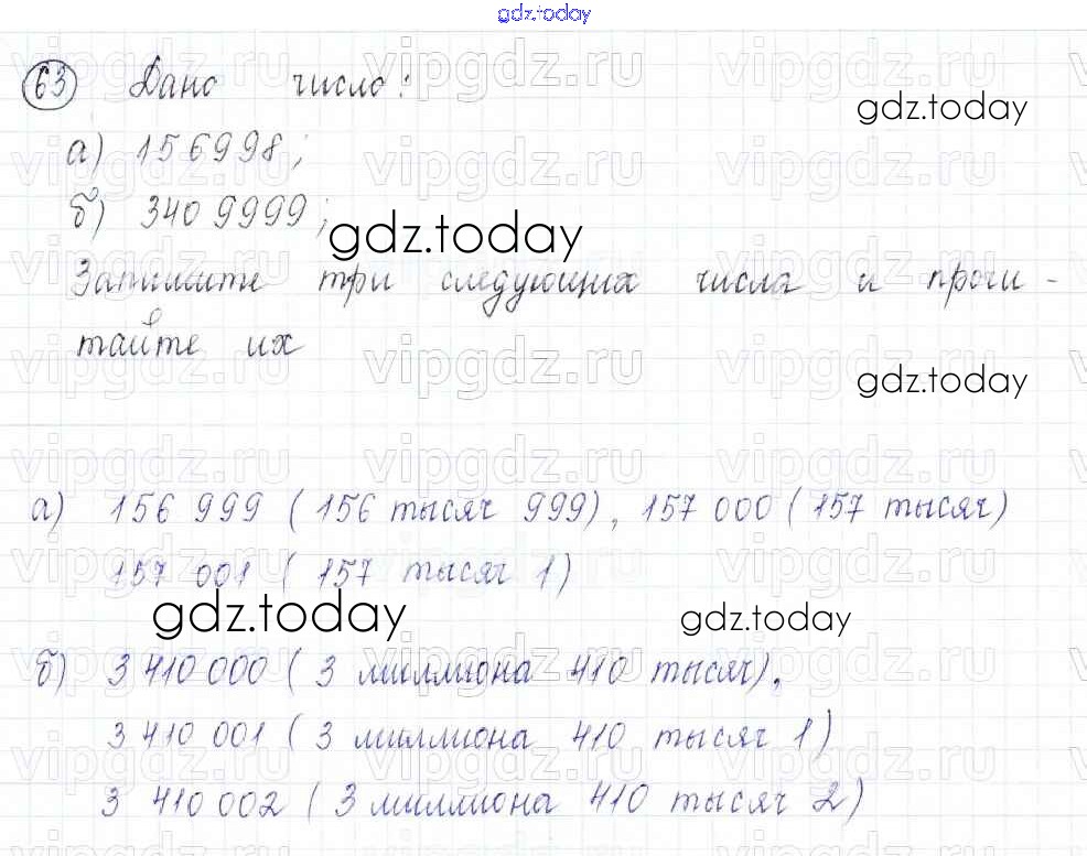 На страницах сайта gdz.today вы найдете учебный и вспомогательный материал, направленный на улучшения знаний школьной программы. ГДЗ - онлайн мир знаний Решение. Упражнения 63 Учебнику по Математике для 5 класса Бунимович, Дорофеев Просвещение Сферы 2014