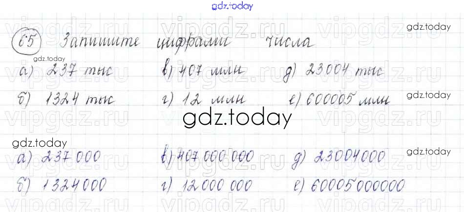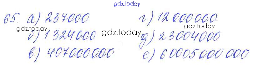 На страницах сайта gdz.today вы найдете учебный и вспомогательный материал, направленный на улучшения знаний школьной программы. ГДЗ - онлайн мир знаний Решение. Упражнения 65 Учебнику по Математике для 5 класса Бунимович, Дорофеев Просвещение Сферы 2014
