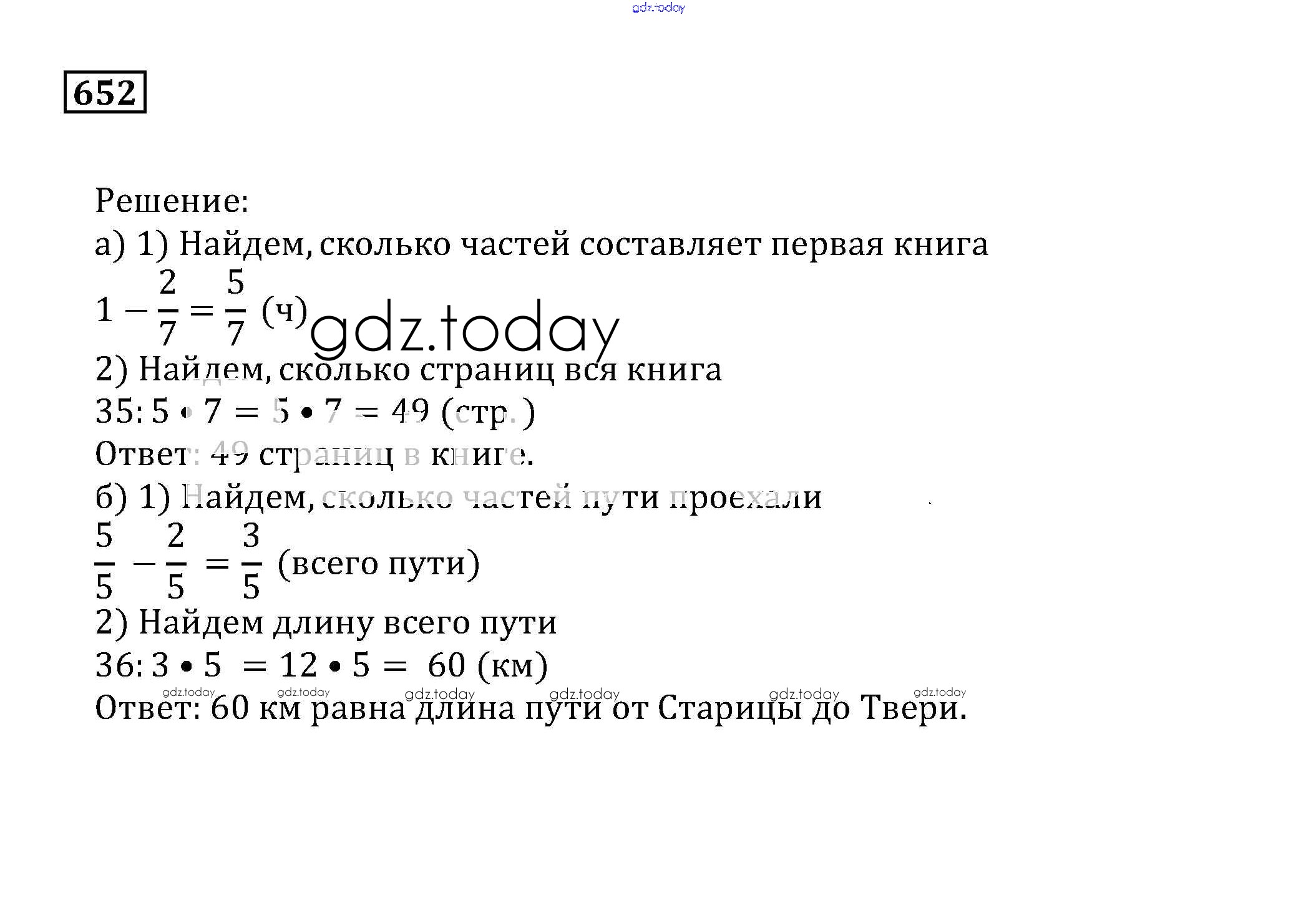 На страницах сайта gdz.today вы найдете учебный и вспомогательный материал, направленный на улучшения знаний школьной программы. ГДЗ - онлайн мир знаний Решение. Упражнения 652 Учебнику по Математике для 5 класса Бунимович, Дорофеев Просвещение Сферы 2014