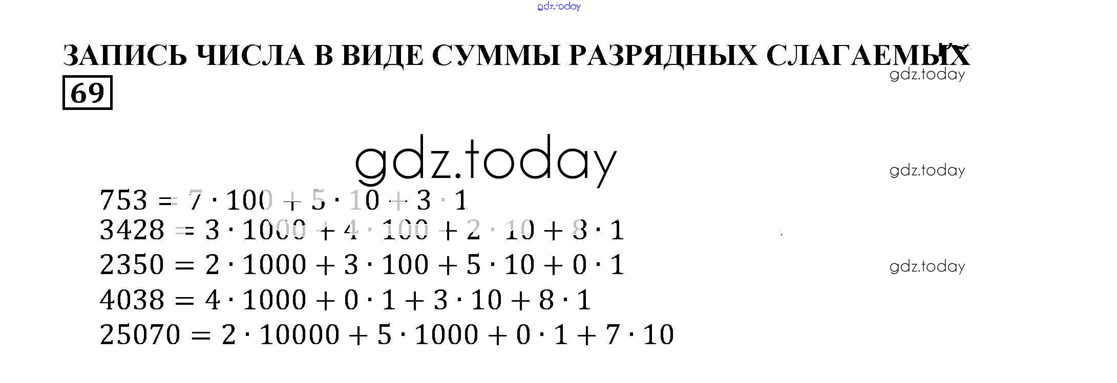 На страницах сайта gdz.today вы найдете учебный и вспомогательный материал, направленный на улучшения знаний школьной программы. ГДЗ - онлайн мир знаний Решение. Упражнения 69 Учебнику по Математике для 5 класса Бунимович, Дорофеев Просвещение Сферы 2014