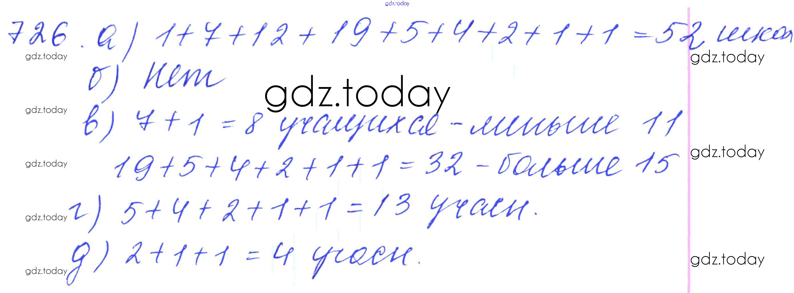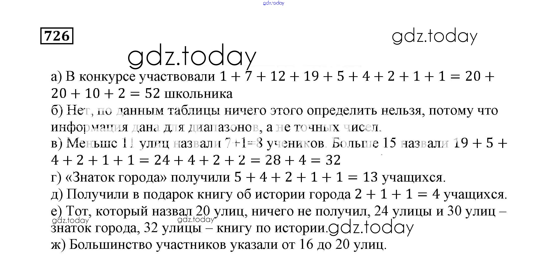 На страницах сайта gdz.today вы найдете учебный и вспомогательный материал, направленный на улучшения знаний школьной программы. ГДЗ - онлайн мир знаний Решение. Упражнения 726 Учебнику по Математике для 5 класса Бунимович, Дорофеев Просвещение Сферы 2014
