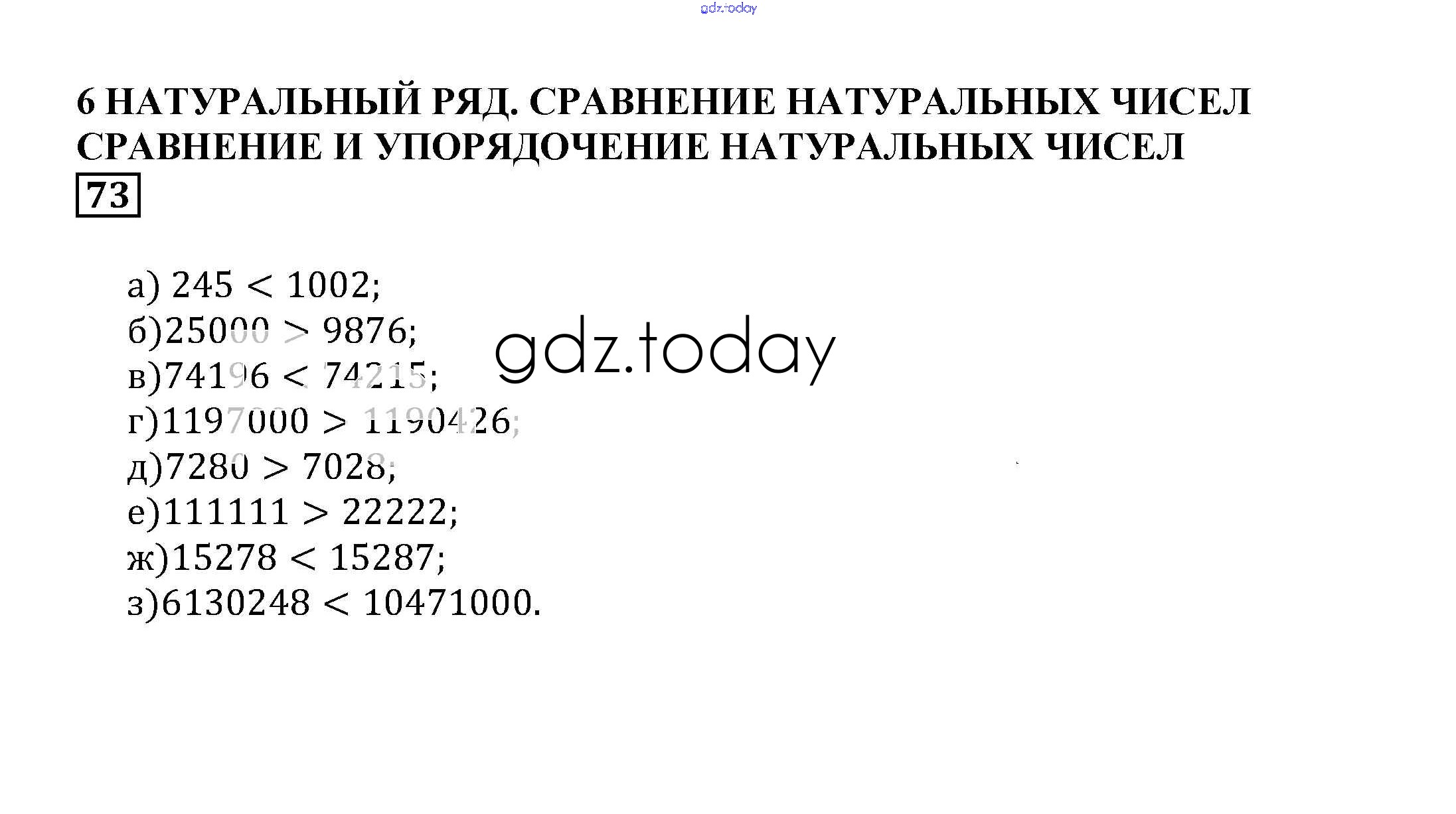 На страницах сайта gdz.today вы найдете учебный и вспомогательный материал, направленный на улучшения знаний школьной программы. ГДЗ - онлайн мир знаний Решение. Упражнения 73 Учебнику по Математике для 5 класса Бунимович, Дорофеев Просвещение Сферы 2014