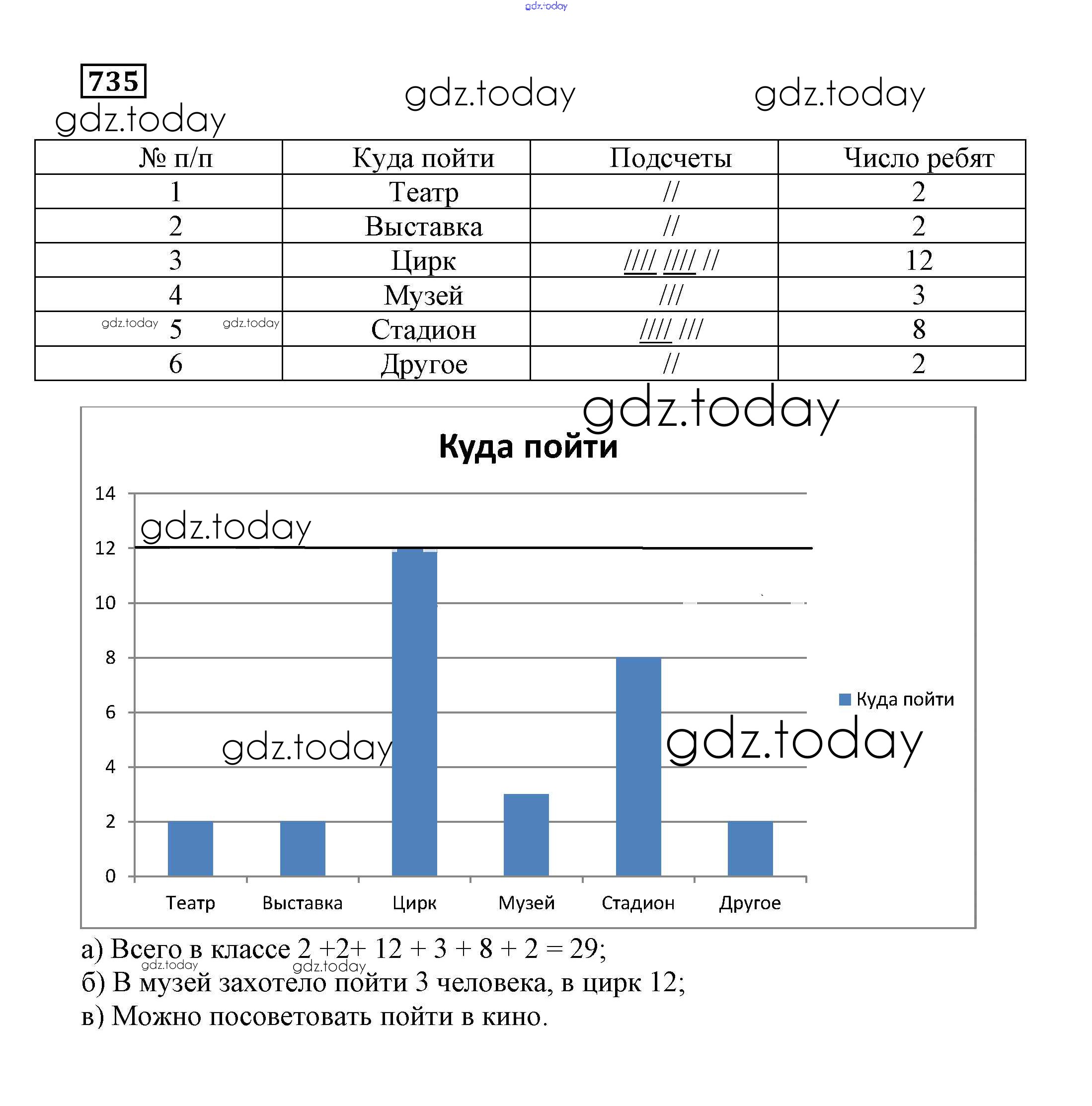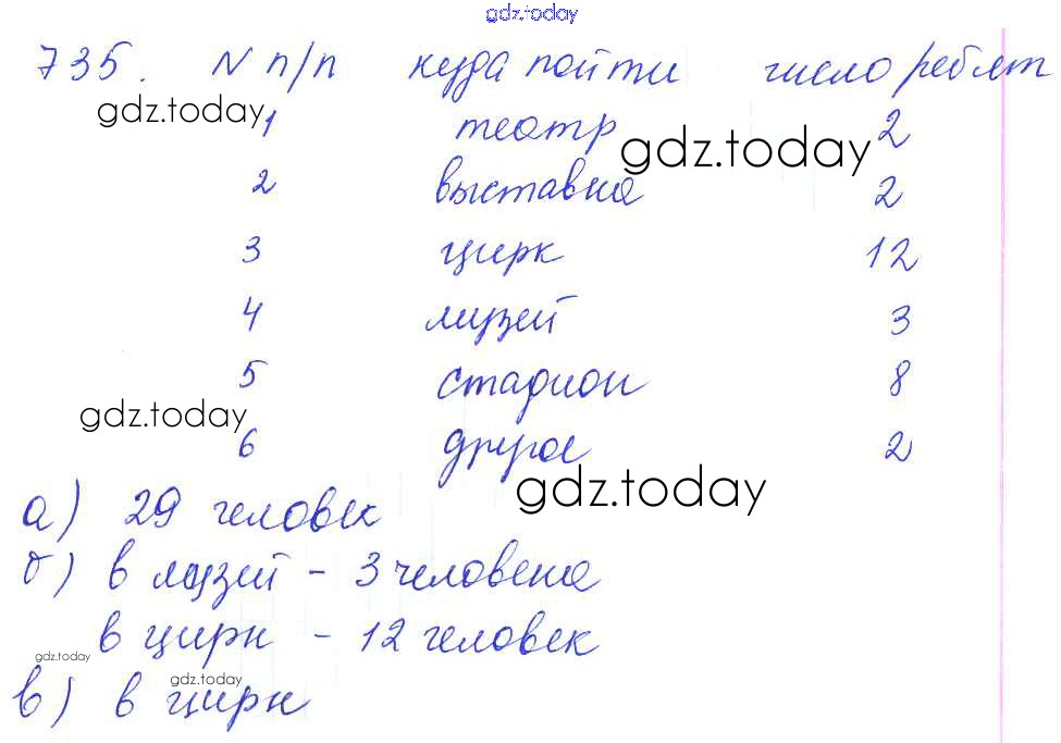 На страницах сайта gdz.today вы найдете учебный и вспомогательный материал, направленный на улучшения знаний школьной программы. ГДЗ - онлайн мир знаний Решение. Упражнения 735 Учебнику по Математике для 5 класса Бунимович, Дорофеев Просвещение Сферы 2014