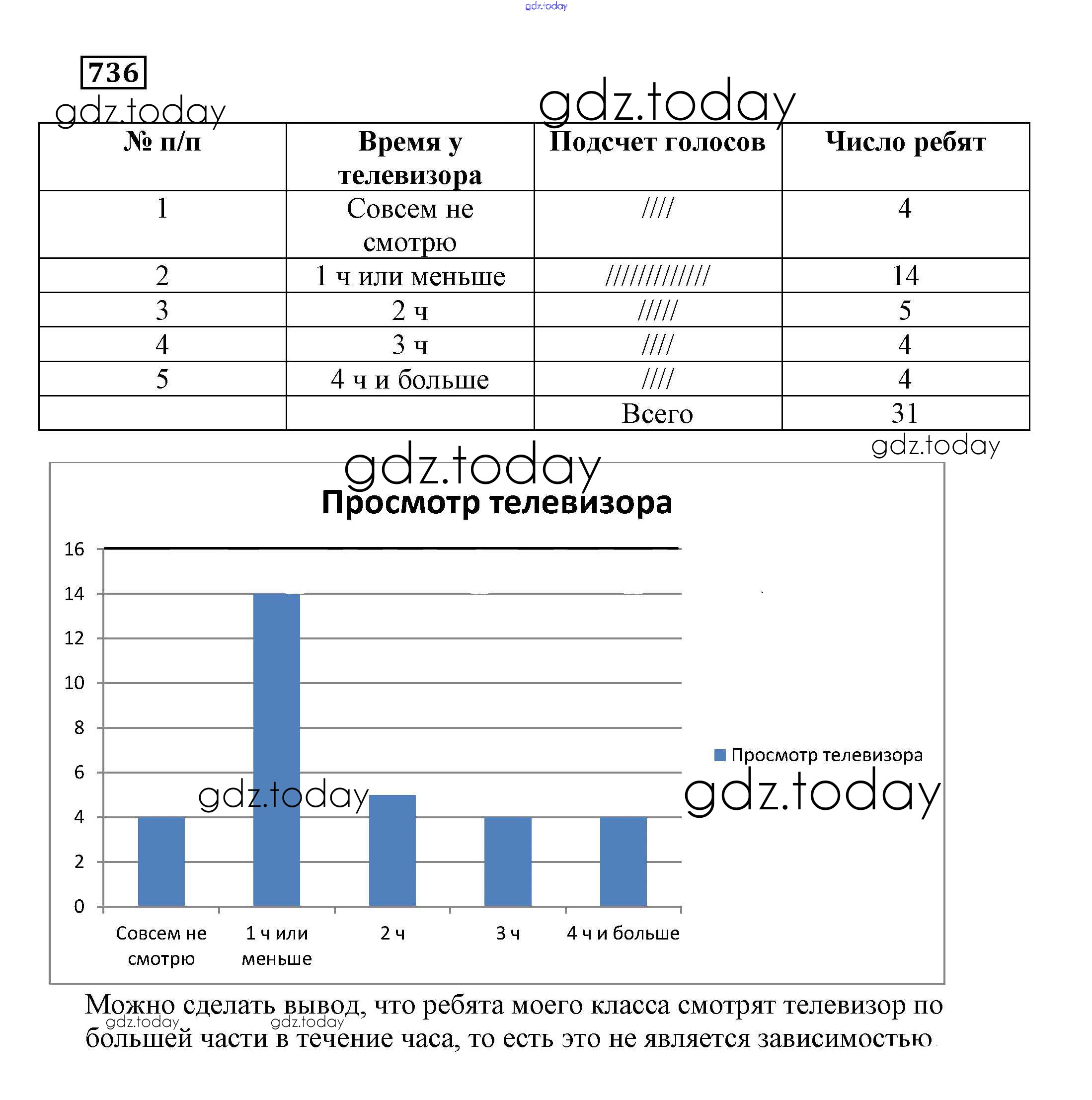 На страницах сайта gdz.today вы найдете учебный и вспомогательный материал, направленный на улучшения знаний школьной программы. ГДЗ - онлайн мир знаний Решение. Упражнения 736 Учебнику по Математике для 5 класса Бунимович, Дорофеев Просвещение Сферы 2014