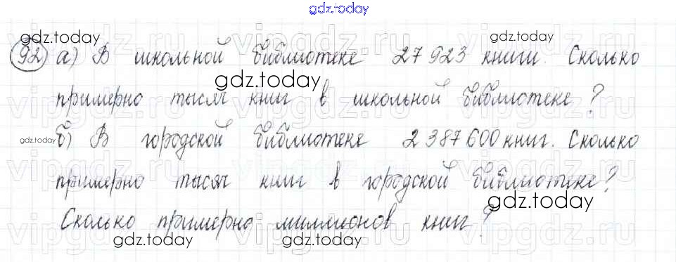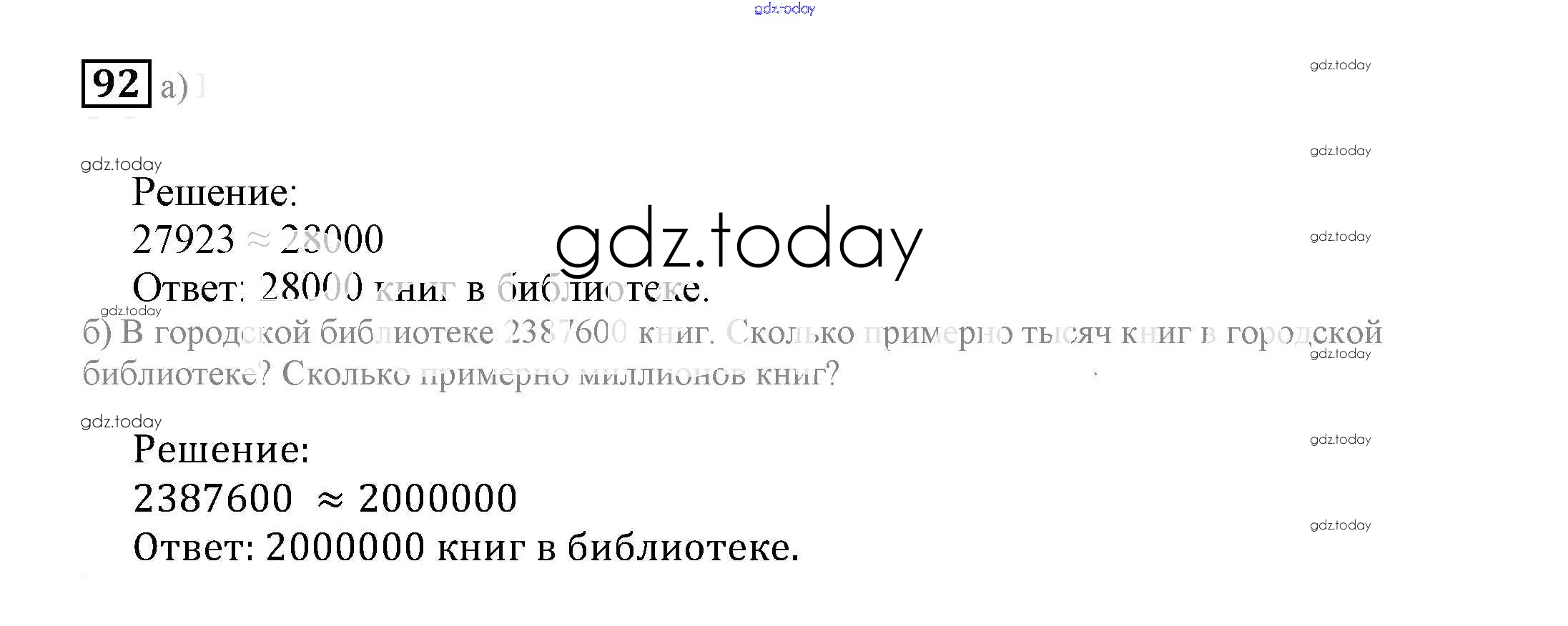 На страницах сайта gdz.today вы найдете учебный и вспомогательный материал, направленный на улучшения знаний школьной программы. ГДЗ - онлайн мир знаний Решение. Упражнения 92 Учебнику по Математике для 5 класса Бунимович, Дорофеев Просвещение Сферы 2014
