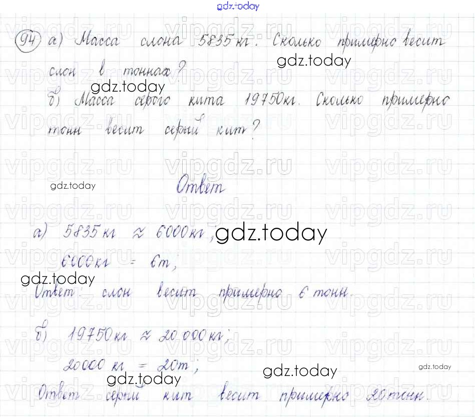 На страницах сайта gdz.today вы найдете учебный и вспомогательный материал, направленный на улучшения знаний школьной программы. ГДЗ - онлайн мир знаний Решение. Упражнения 94 Учебнику по Математике для 5 класса Бунимович, Дорофеев Просвещение Сферы 2014