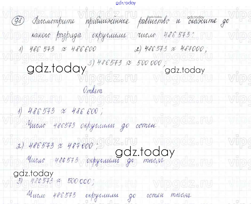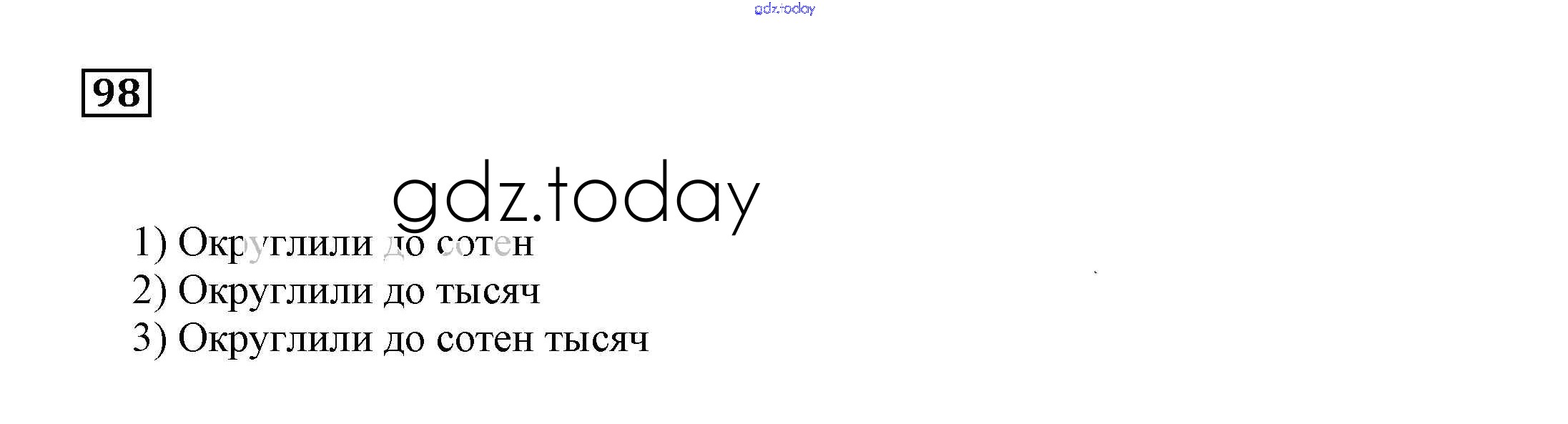 На страницах сайта gdz.today вы найдете учебный и вспомогательный материал, направленный на улучшения знаний школьной программы. ГДЗ - онлайн мир знаний Решение. Упражнения 98 Учебнику по Математике для 5 класса Бунимович, Дорофеев Просвещение Сферы 2014