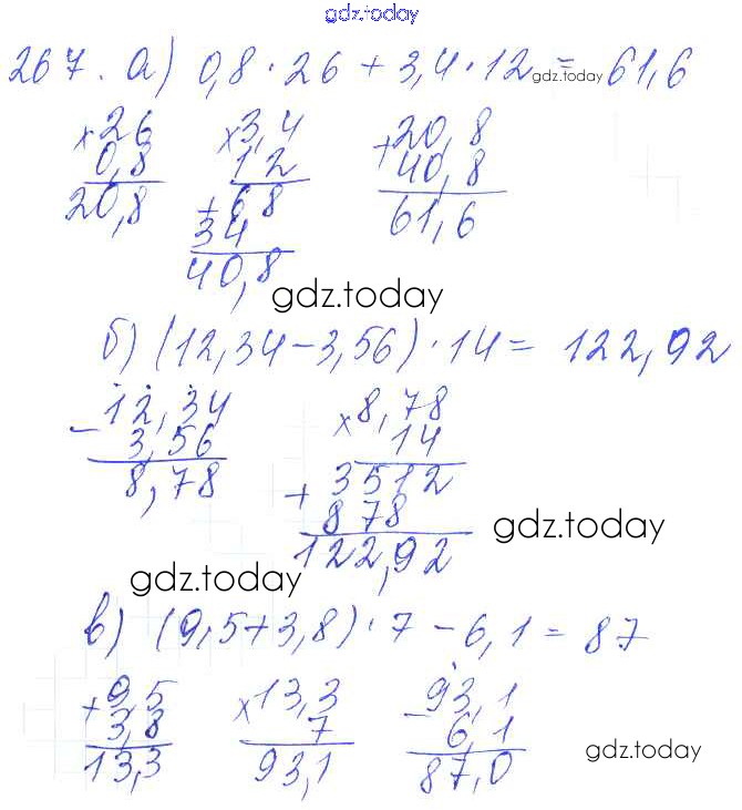 На страницах сайта gdz.today вы найдете учебный и вспомогательный материал, направленный на улучшения знаний школьной программы. ГДЗ - онлайн мир знаний Вариант 1 Решение к самостоятельным работам 267 Дидактическим материалам по Математике для 5 класса Чесноков, Нешков Академкнига 2014