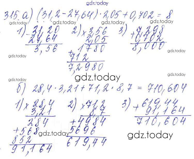 На страницах сайта gdz.today вы найдете учебный и вспомогательный материал, направленный на улучшения знаний школьной программы. ГДЗ - онлайн мир знаний Вариант 1 Решение к самостоятельным работам 315 Дидактическим материалам по Математике для 5 класса Чесноков, Нешков Академкнига 2014