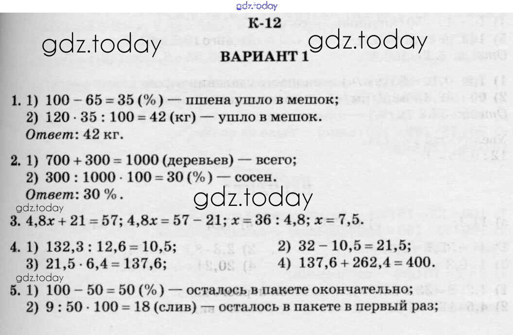 Ответы к КР-12. Варианты Решение к контрольные работам к учебнику Виленкина 1 Дидактическим материалам по Математике для 5 класса Чесноков, Нешков Академкнига 2014