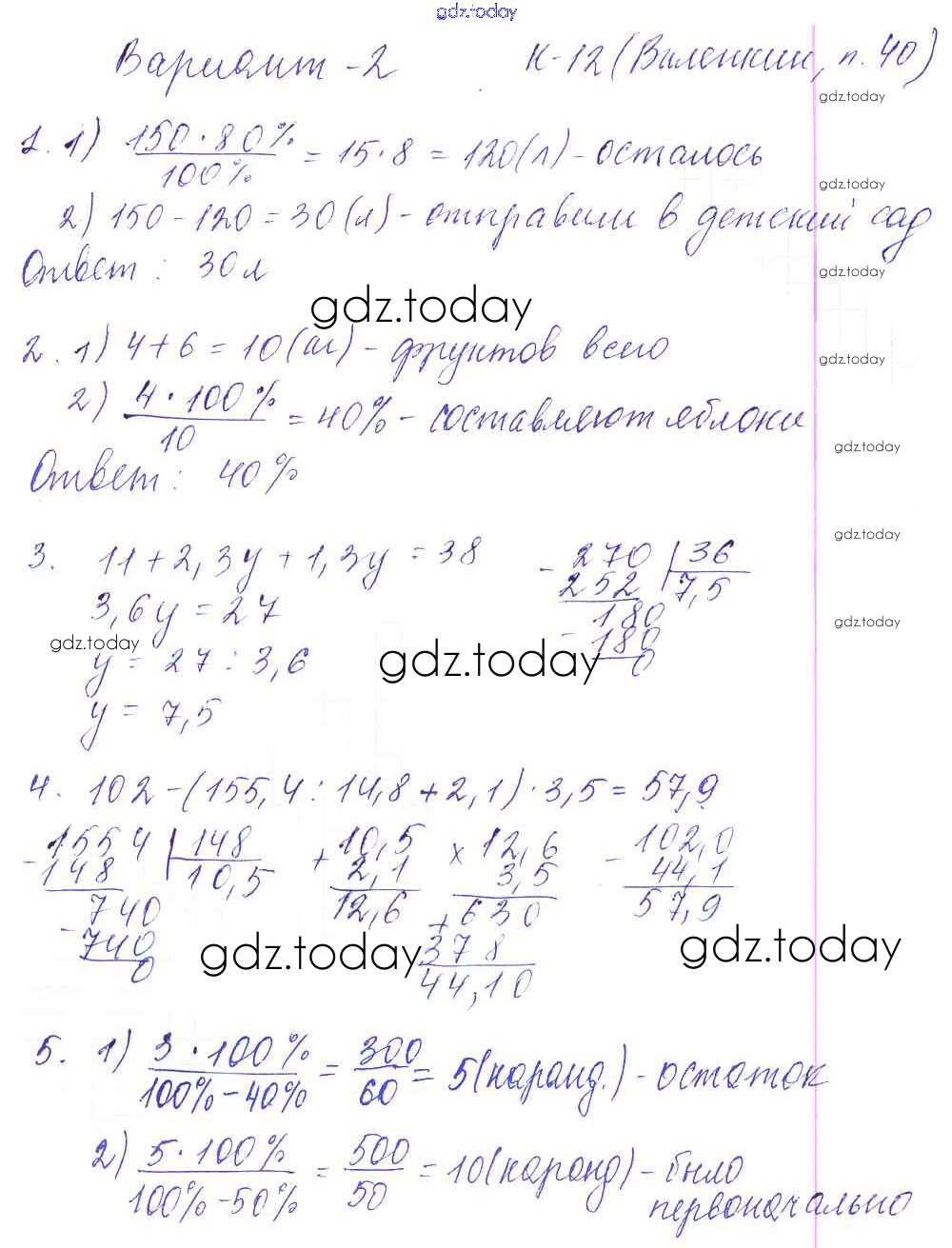 На страницах сайта gdz.today вы найдете учебный и вспомогательный материал, направленный на улучшения знаний школьной программы. ГДЗ - онлайн мир знаний КР-12. Варианты Решение к контрольные работам к учебнику Виленкина 2 Дидактическим материалам по Математике для 5 класса Чесноков, Нешков Академкнига 2014