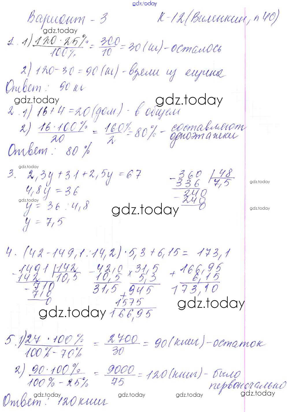 Ответы к КР-12. Варианты Решение к контрольные работам к учебнику Виленкина 3 Дидактическим материалам по Математике для 5 класса Чесноков, Нешков Академкнига 2014