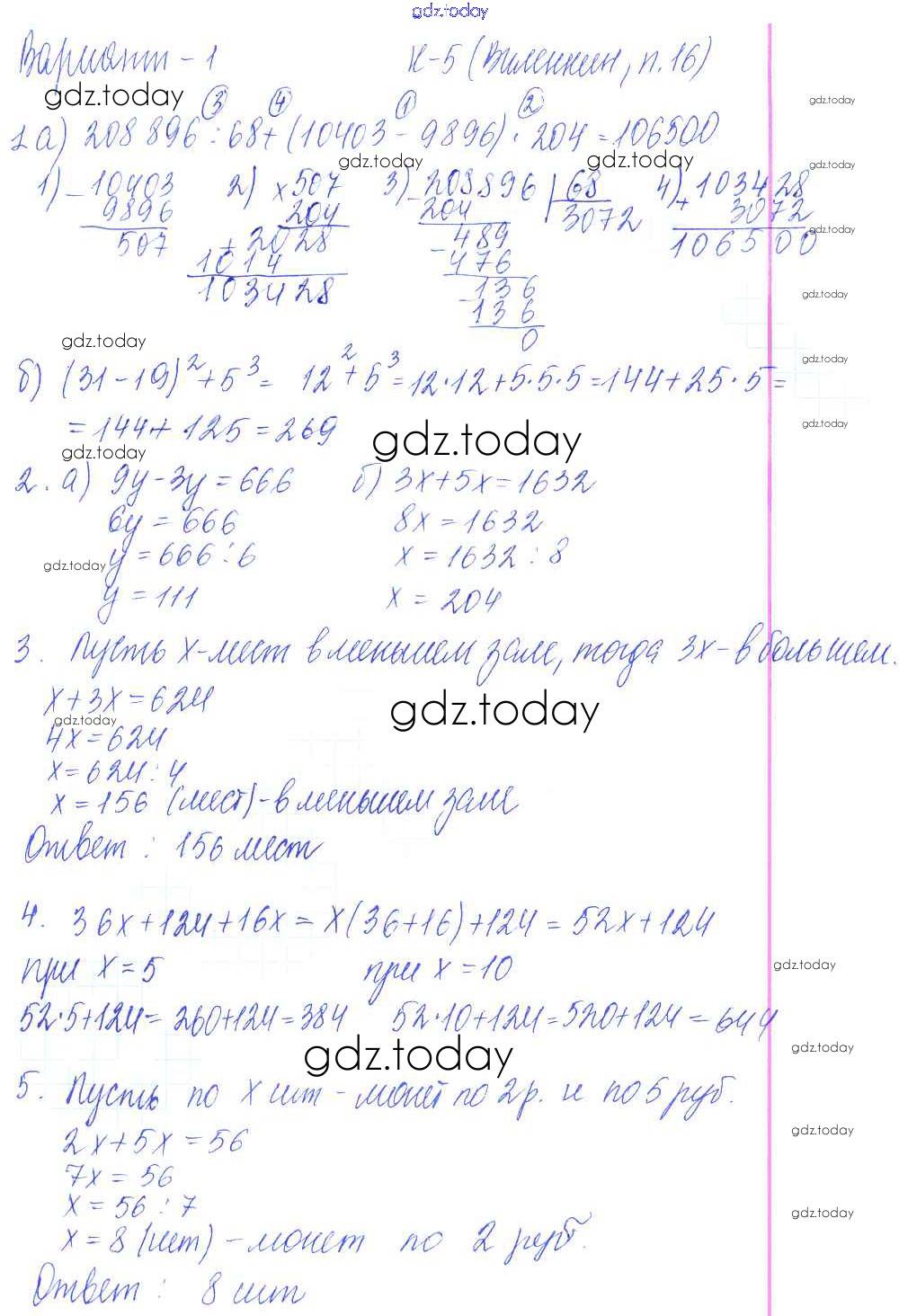 Ответы к КР-5. Варианты Решение к контрольные работам к учебнику Виленкина 1 Дидактическим материалам по Математике для 5 класса Чесноков, Нешков Академкнига 2014