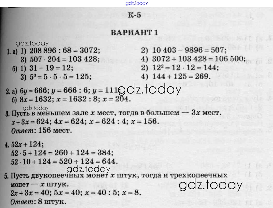 На страницах сайта gdz.today вы найдете учебный и вспомогательный материал, направленный на улучшения знаний школьной программы. ГДЗ - онлайн мир знаний КР-5. Варианты Решение к контрольные работам к учебнику Виленкина 1 Дидактическим материалам по Математике для 5 класса Чесноков, Нешков Академкнига 2014