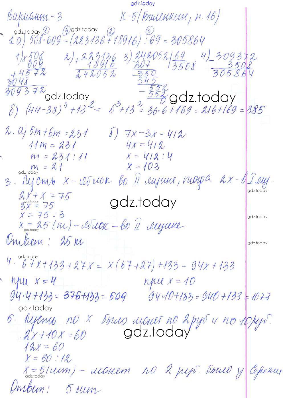 На страницах сайта gdz.today вы найдете учебный и вспомогательный материал, направленный на улучшения знаний школьной программы. ГДЗ - онлайн мир знаний КР-5. Варианты Решение к контрольные работам к учебнику Виленкина 3 Дидактическим материалам по Математике для 5 класса Чесноков, Нешков Академкнига 2014