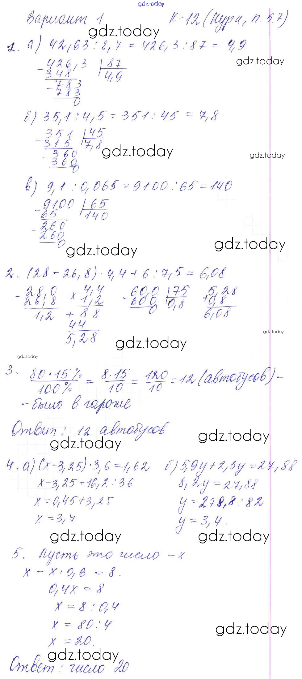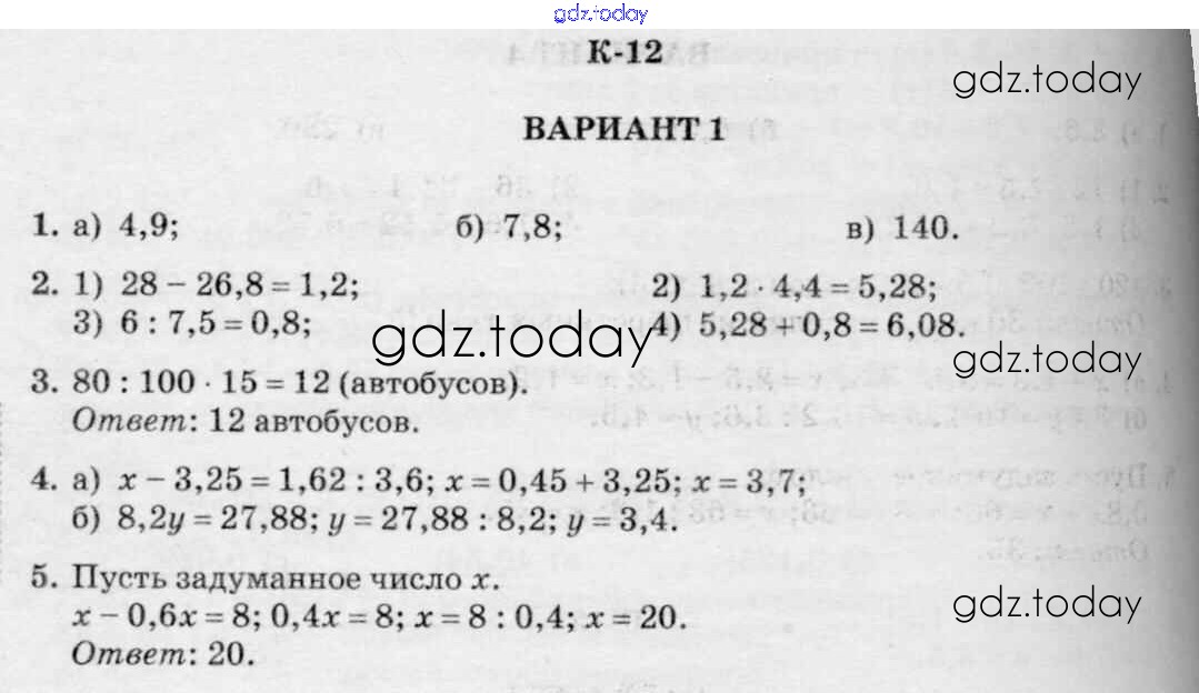 Ответы к КР-12. Варианты Решение к контрольные работы к Решение к Нурка 1 Дидактическим материалам по Математике для 5 класса Чесноков, Нешков Академкнига 2014