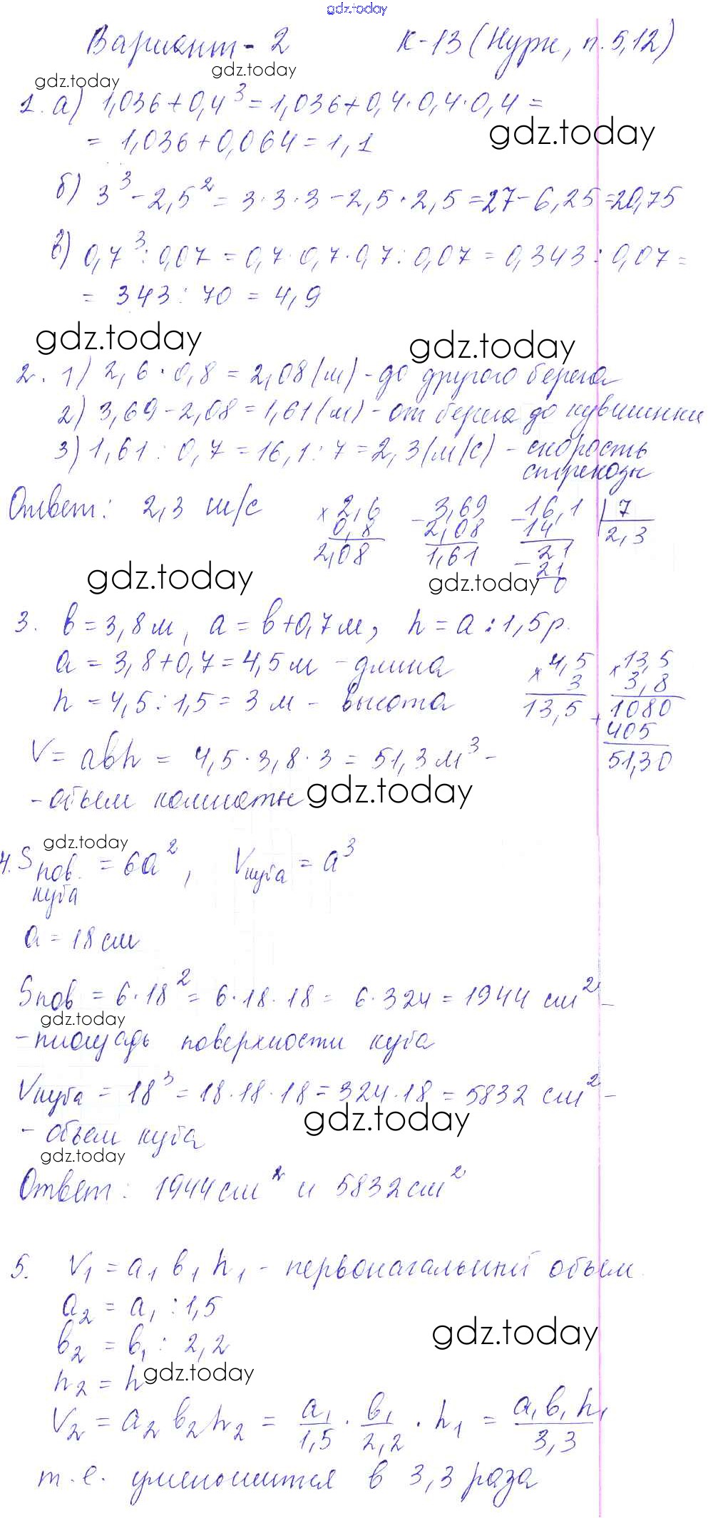 Ответы к КР-13. Варианты Решение к контрольные работы к Решение к Нурка 2 Дидактическим материалам по Математике для 5 класса Чесноков, Нешков Академкнига 2014