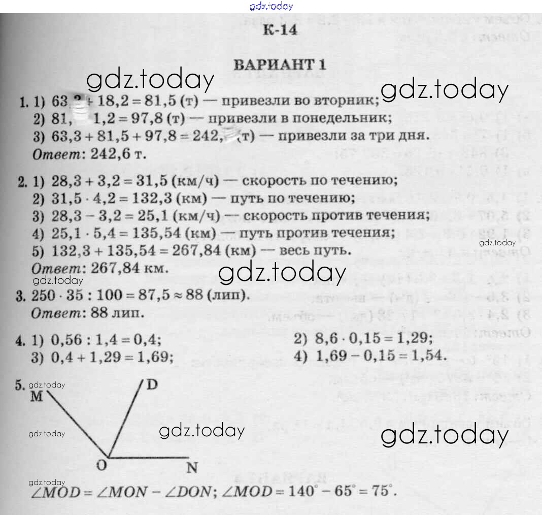 Ответы к КР-14. Варианты Решение к контрольные работы к Решение к Нурка 1 Дидактическим материалам по Математике для 5 класса Чесноков, Нешков Академкнига 2014