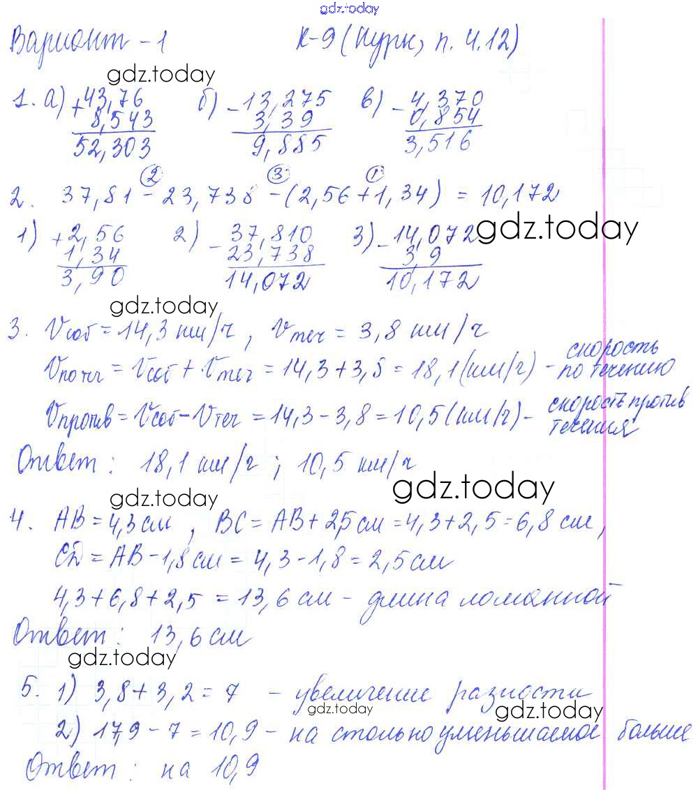 Ответы к КР-9. Варианты Решение к контрольные работы к Решение к Нурка 1 Дидактическим материалам по Математике для 5 класса Чесноков, Нешков Академкнига 2014