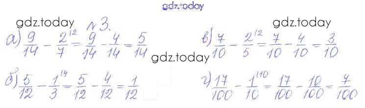 На страницах сайта gdz.today вы найдете учебный и вспомогательный материал, направленный на улучшения знаний школьной программы. ГДЗ - онлайн мир знаний О-33. Вычитание дробей Решение к обучающим работам 3 Дидактическим материалам по Математике для 5 класса Кузнецова, Минаева Просвещение Академический школьный учебник 2014