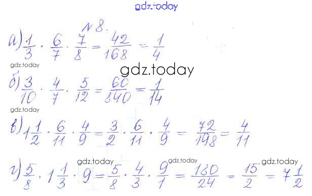 Ответы к О-36. Умножение дробей Решение к обучающим работам 8 Дидактическим материалам по Математике для 5 класса Кузнецова, Минаева Просвещение Академический школьный учебник 2014